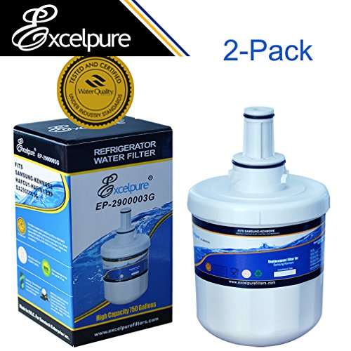 Excelpure Refrigerator Water Filter Replacement (2 PACK) compatible with Samsung DA2900003G DA29-00003A, DA61-159, HAFCU1, HAFIN1, WSS-1, WF289, SGF-DSB30, W10132126 and more