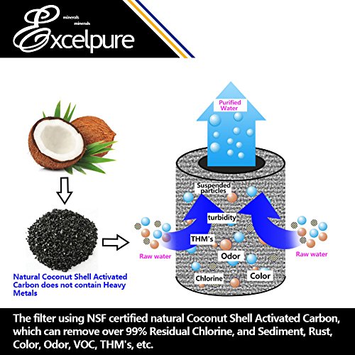 - The filter contains certified coconut shell based activated carbon, which removes 99% Chlorine and odor.