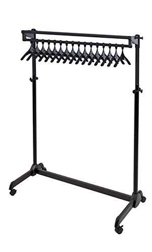 - Includes 17 anti-theft hangers Single sided design means it is easy to put along the wall to save space 8 accessory hooks 4 rolling casters, 2 with brakes Easy to assemble