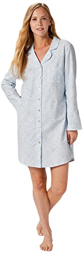Coyuchi Women's Cloud Brushed Organic Flannel Sleepshirt, Small, Blue Forest Print