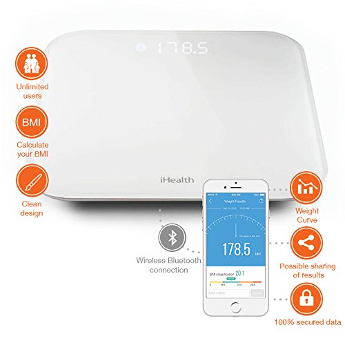 One-touch automatic sync via Bluetooth Smart technology with the free iHealth MyVitals app to track your weight and share with your doctor or fitness instructor