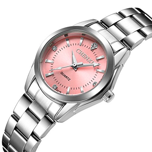 -. Feature : Gifts: The fashion design makes the watch all match for any occasion. Perfect gift for Mother's Day, Anniversary Day, Valentine's Day and birthday to your girlfriend, wife and mom. / PRECISE TIME KEEPING: Japanese quartz analog provide precise and accurate time keeping. Imported battery which can provide the wristwatch strong power. / WATERPROOF: 30 m (99 ft): In general, withstands splashes or brief immersion in water, but not suitable for swimming. / Digital WATCH: Fashionable dial design for women, casual style outlook. The needle with Luminous, elegant rhinestone embedded and simple Roman numeral as hours indicators / DURABLE MATERIAL: Stainless steel band with high quality alloy watch back case for comfortable wear, hardness glass watch face for scratch resistant, every points are made by high quality material, truly make it cost-effective.