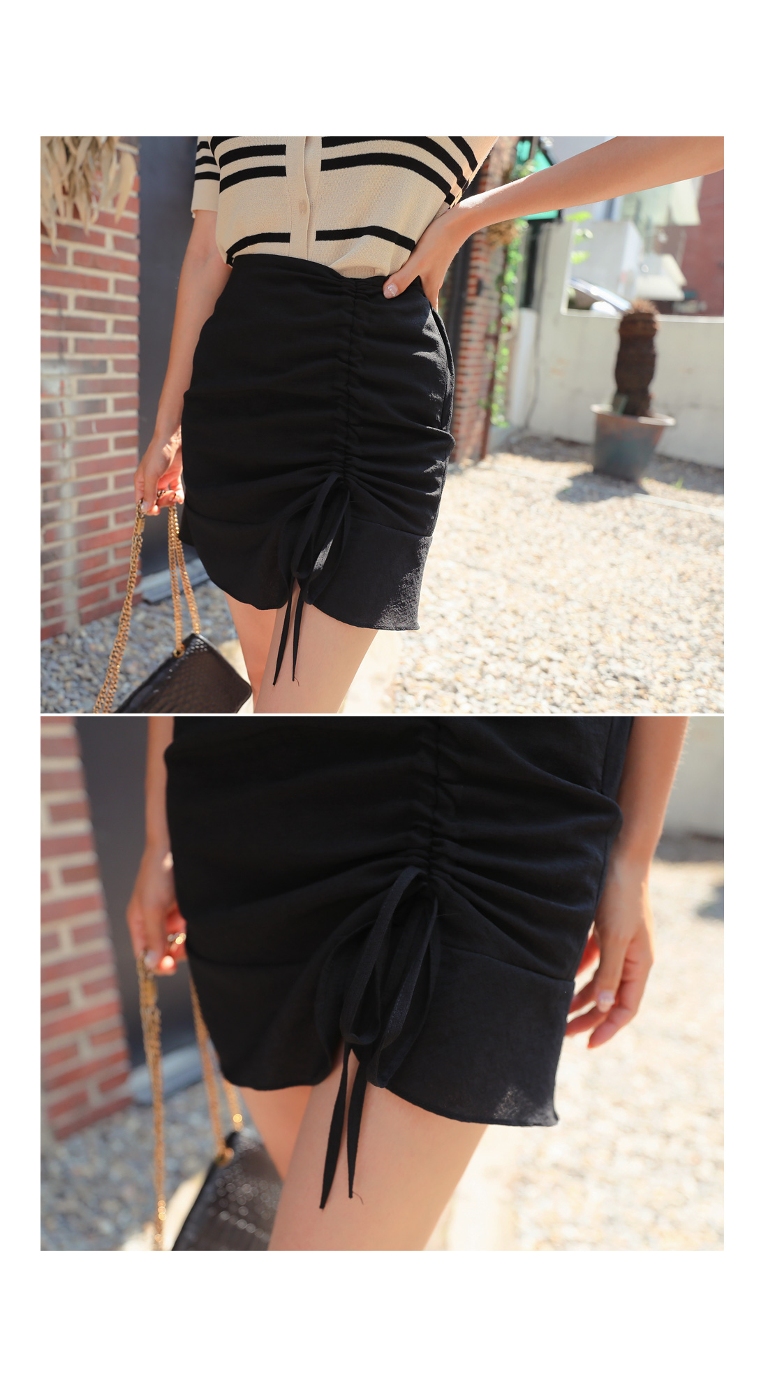 트렌디한 룩을 연출해 줄 셔링 스커트를 소개할게요.