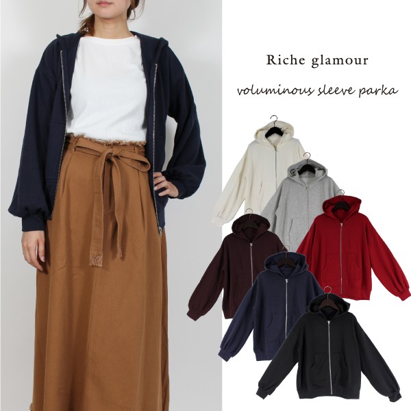 T/C裏毛のボリュームスリーブ パーカ☆