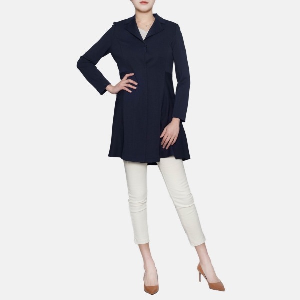 섬세한 니트의 편직으로 여러쪽을 나누어 바느질하여 플레어가 돋보여 허리라인이 돋보이는 롱쟈켓입니다