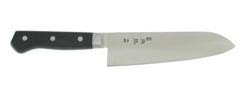 Kotobuki knives are made in Japan where knives are made for a specific use and purpose with a unique shape. These knives have a high quality stainless blade that keeps it's edge and is easy to clean. Santoku, meaning 3-uses, is a Japanese version of a Chef's knife. The short double-edged blade makes the knife easy to handle and is ideal for slicing, chopping, and dicing meats, fish, and vegetables. Blade length: 6-5/8-inch Hand wash with a mild detergent and wipe dry. Sharpen with a whetstone.
