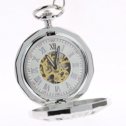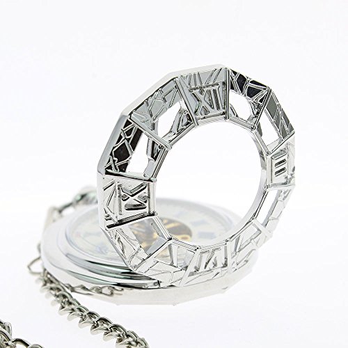 -. Feature : Mechanical Hand-Winding Pocket Watch,No Need Any Batteries / Chain Length 14.17 in approx.,Case diameter: 1.77 in approx. Case thickness: 0.51 in approx. / Silver Chain and Black Roman Numerals Dial / Polygon Roman Numerals Engraved Cover / Come with A Free Chain & Gift Box,Fashion Steampunk Style