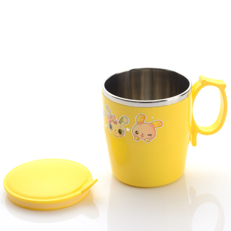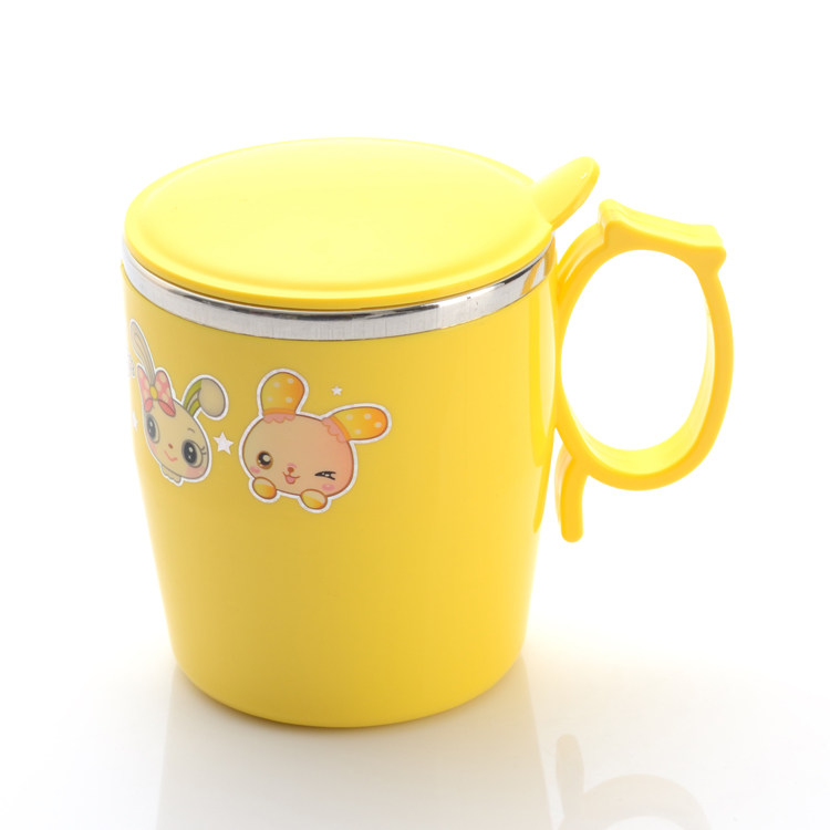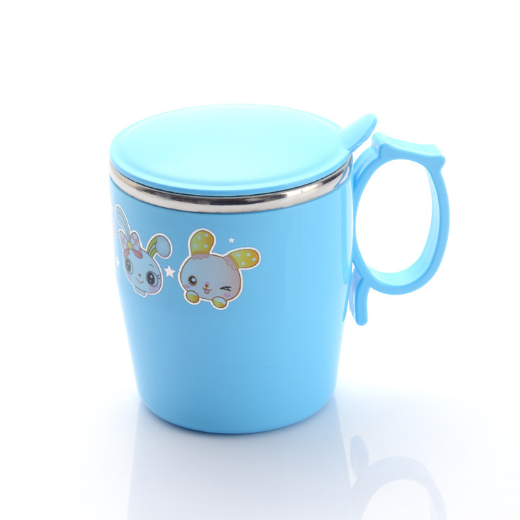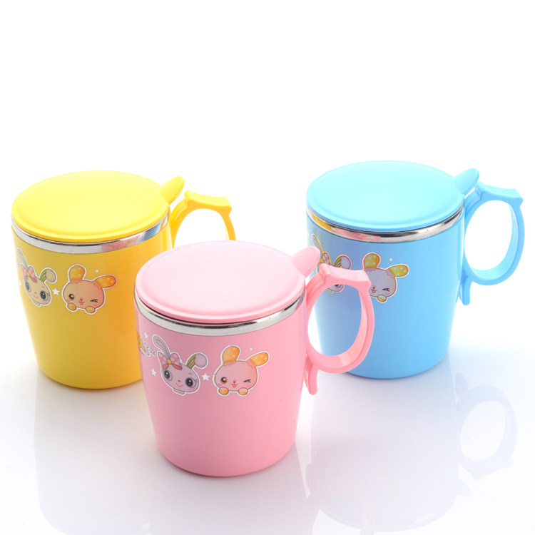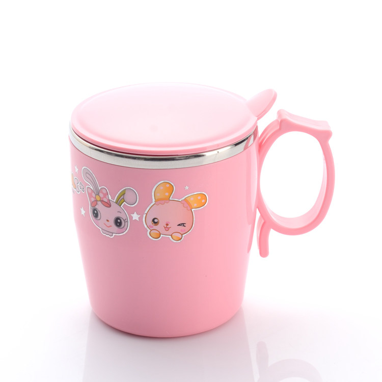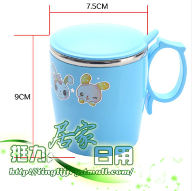 挺力儿童杯可爱防摔隔热宝宝杯卡通杯不锈钢塑料马克杯