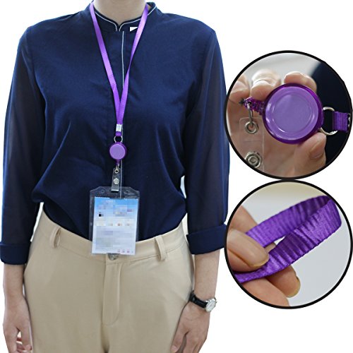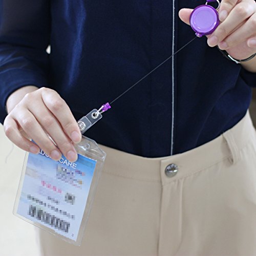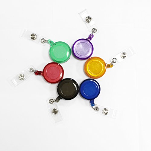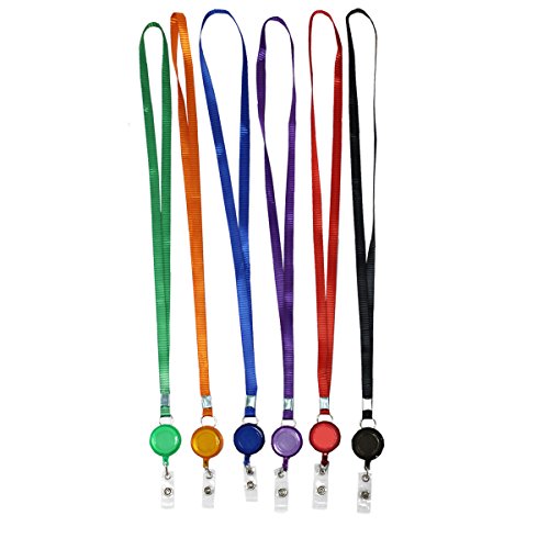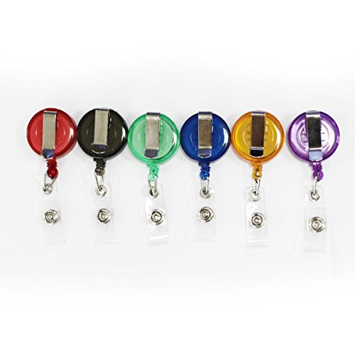 6 Pieces Colorful Plastic Translucent Retractable Badge Holder Reel Key Chain Reel with Neck Strap for ID Cards , Key Cards,Name Tags and Badge Holders