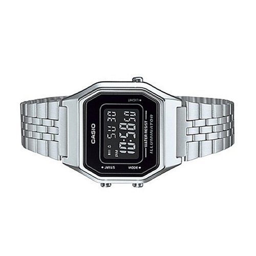 Casio Ladies Mid-Size Silver Digital Retro Watch LA-680WA-1BDF