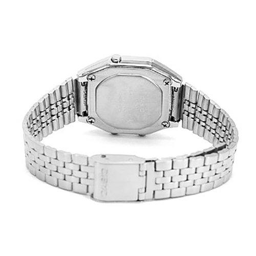 ladies watch, brand Casio model code la680wa-1bdf. 28mm case size, made of steel linked to a beautiful color steel strap silver. Quartz movement with sliding lacing.