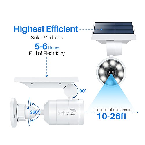【Solar Lights Outdoor lighting much Brighter and Longer】- Outdoor solar spotlight flood security light 1400LM 5W(110W Equiv.) Bright LED with optics-grade PMMA lens makes it much brighter. Battery capacity of 2600mAh can last over 30 hours lighting, which is much longer than other similar products in the market. On sunny days only takes about 6-8 hours to fully charge.