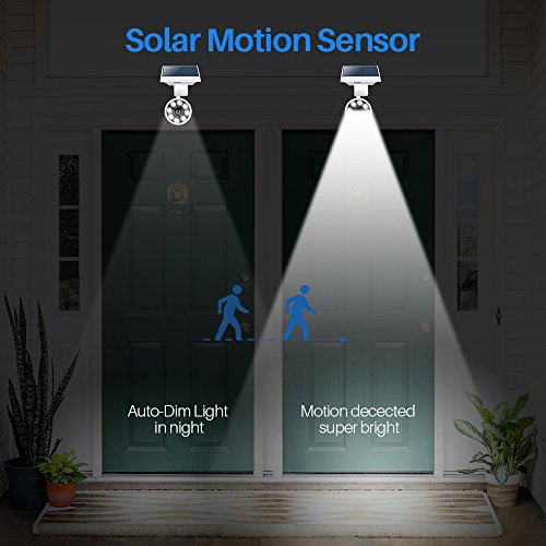 Solar lights outdoor garden motion sensor light is apply to outdoor flood security lighting and CCTV security camera auxiliary lighting. If you want environment-friendly, versatile and powerful outdoor lighting for your Garden,Path,Porch,Deck, or a handy and quickly installed lamp for social occasions on your lawn and garden or by the pool, then our 1400Lm bright LED solar lights is an excellent option. Its advanced solar panel is designed for the most efficient use of solar energy, On sunny days only takes about 6-8 hours to fully charge,at least 30 hours of continuous use. The lamp holder is adjustable of 360 degrees, can meet a variety of angles of outdoor lighting.The weak light will be turned on automatically in the dark, then it will offer high light when people get close around 10-26ft..High-quality texture with aluminum-alloy case,more safely protection circuit of Li-ion battery,waterproof, explosion-proof,Ingress protection IP66.