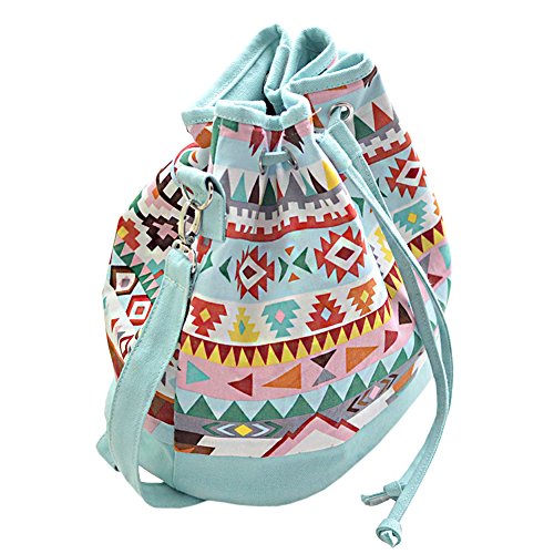 Women's Bohemian Patterned Canvas Drawstring Bucket Bag with Triple Wear Stlye by the Detachable Strap - Crossbody Shoulder Bag - Mini Backpack
