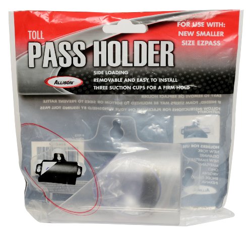 ReleaseDate : 2013-07-04 Studio : Allison Publisher : Allison Binding : Automotive Product Description Toll Pass Holder makes it easy to use your electronic toll tag in multiple vehicles or remove it to prevent theft. The toll pass holder is designed to be used for the new size EZ pass transponders and mounts to the windshield of your vehicle with three suction cups. The pass holder is for use with toll pass transponders in the states of New York, Delaware, New Hampshire, Maryland, Ohio, Virginia, Rhode Island, New Jersey, Pennsylvania, Maine, Massachusetts, Illinois, and West Virginia. Available in white, black, or clear colors. 0