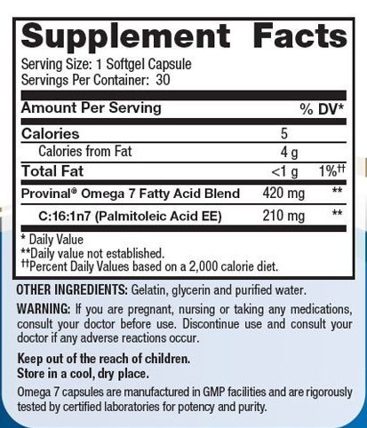 To maximize the benefits, choose a highly purified Omega 7. Provinal Omega 7 fatty acids set the standard for purity, removing saturated fatty acids and expressing high levels of palmitoleic acid. Other formulations contain much higher concentrations of palmitic acid, a saturated fat shown to have negative health effects.