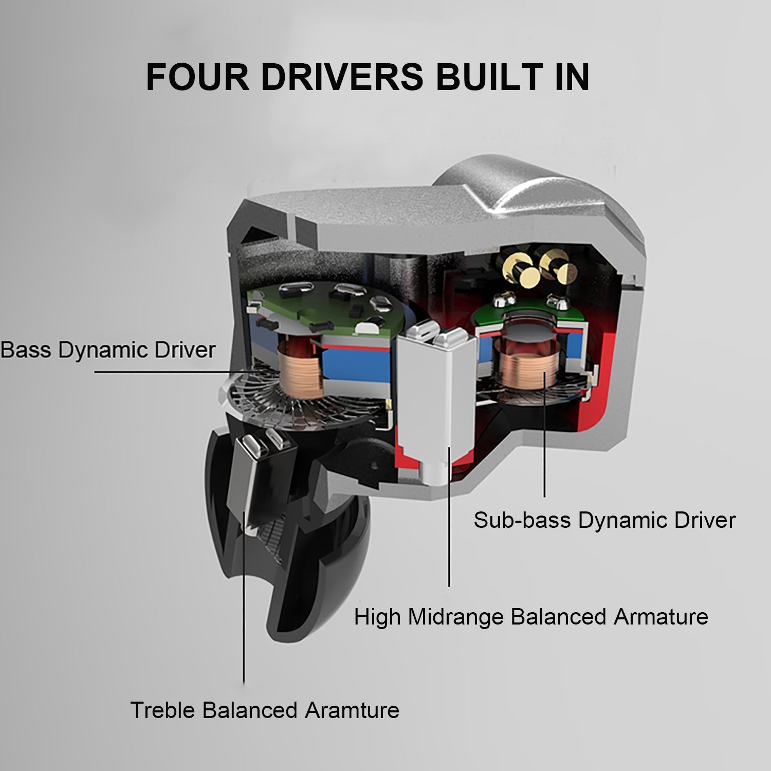 Driver configuration: 2 dynamic drivers, 2 balanced and armature type drivers