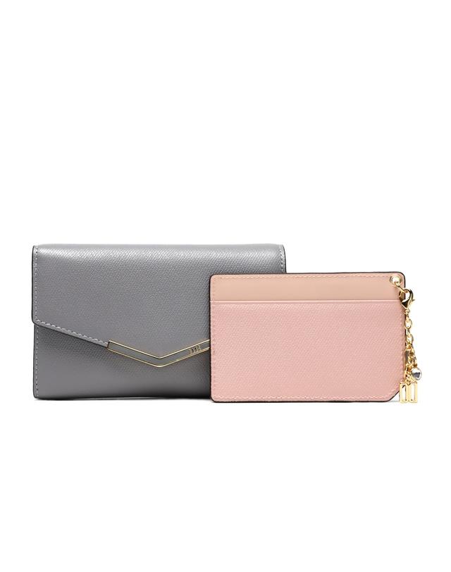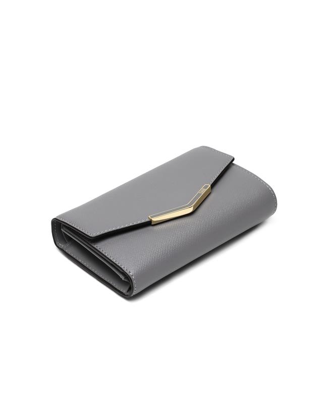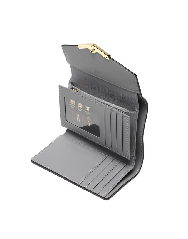 베이직한 디자인에 중앙부 골드 V바 로고 장식과 참장식으로 포인트를 주었고 내부에 카드홀더가 있어 편리한 수납이 가능한 중지갑입니다.