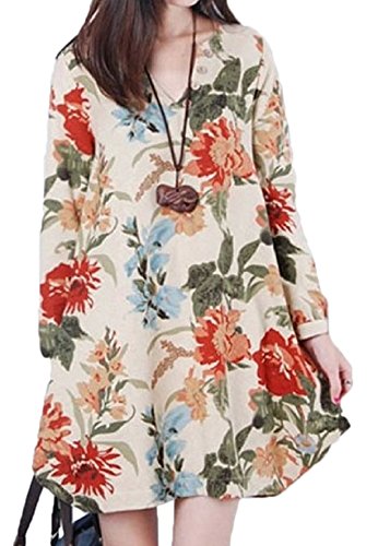 -. Title : 【Smile LaLa】 レディース ワンピ ワンピース 花柄 カジュアル チュニック 長袖 ゆったり フレア ネイビー ベージュ