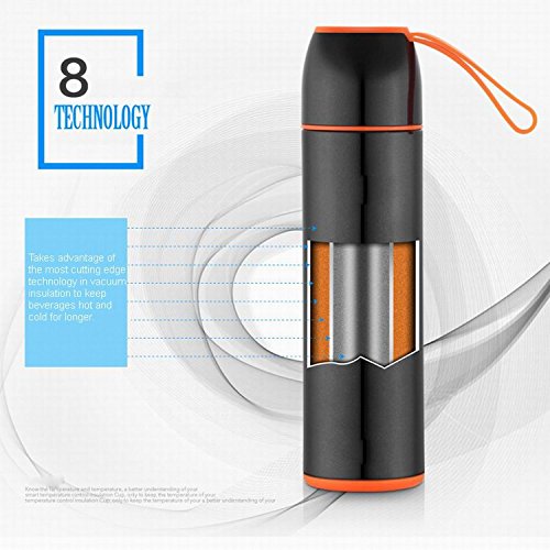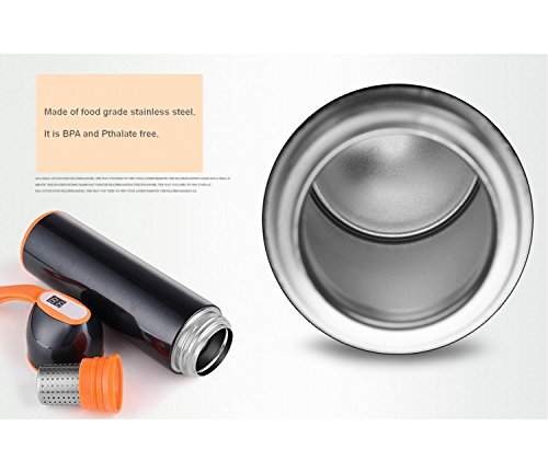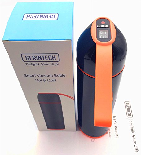 Gerintech 15oz Insulated Vacuum Water Bottle with Smart Temperature Indicator (Black)