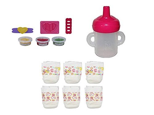 -. Feature : Accessories set for BABY ALIVE dolls. Includes 1 Doll Bottle/Sippy Cup, 6-pack of doll diapers, Pizza snack pack / For use exclusively with BABY ALIVE dolls. / Packaging may vary / • Noodles & Pizza Snack Pack has 3 containers of reusable doll feed • Roll, shape and feed • Make yummy pretend pizza and noodles / • Colors and products may vary.