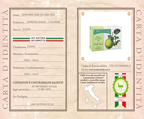 I Provenzali: "Mela Verde" Extra Gentle Soap ,Green Apple Scent 5.3 Ounce (150g) Package (Pack of 3)