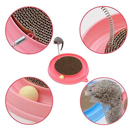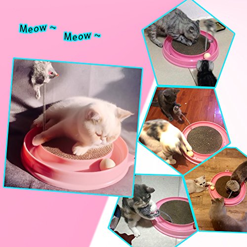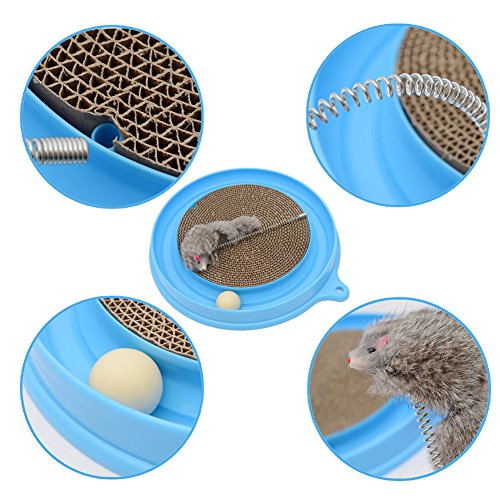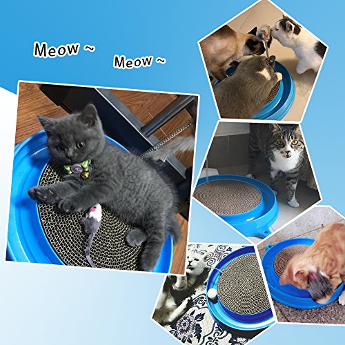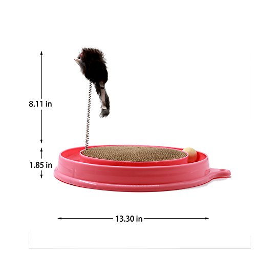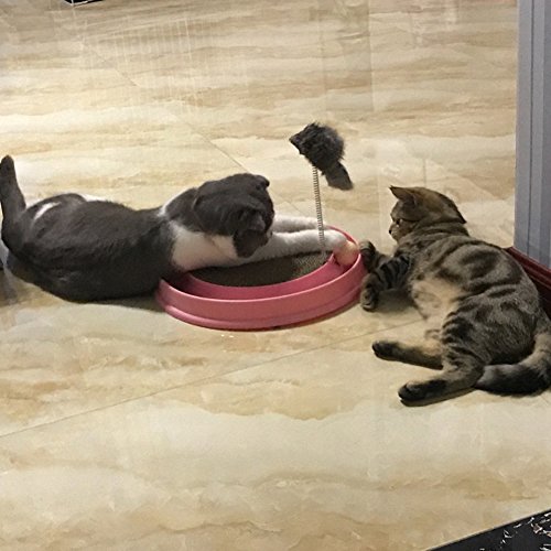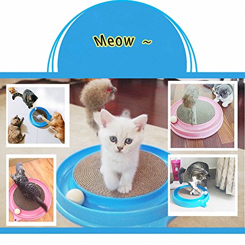 -. Feature : Intellectual Cat Toy Balls Not Pull Out Easily, when the cat catches the ball with paws, the ball will roll around the track, keep your cats occupied and entertained - Intellectual Cat Toy. / The Turbo Scratcher has a channel for a small ball your cat can nudge with its nose or shove with its paw. / In the center of the Turbo Scratcher, the textured scratch pad is both durable and replaceable. / 1 base (13" diameter), 1 scratch pad and 1 ball and 1 Mouse Swatter; place ball in track for hours of fun - entertain your cat and keep away your furniture from scratching! / Protect your furniture, as cats prefer to scratch ,the cat scratch board can provide a good one to replace your furniture, which can protect your furniture from cat's claw damage and won't hurt cat's toes.