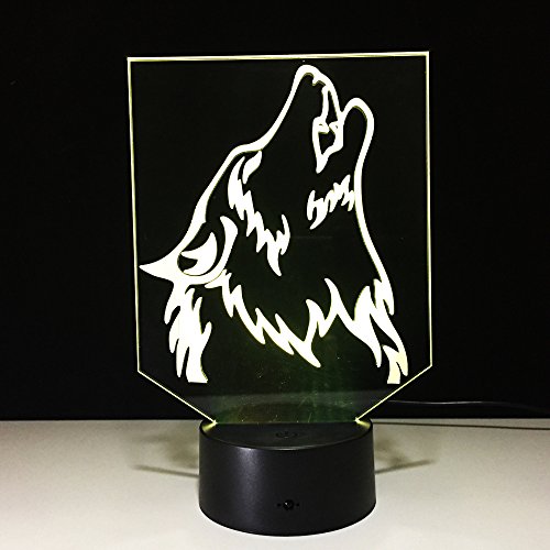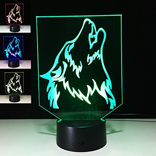 3D Wild Wolf Night Light 7 Color Change LED Table Desk Lamp Acrylic Flat ABS Base USB Charger Home Decoration Toy Brithday Xmas Kid Children Gift