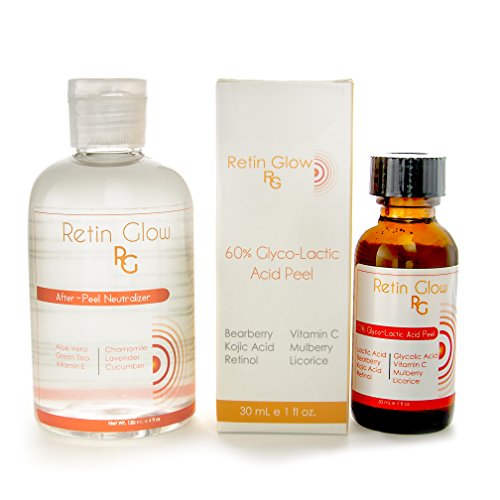 -. Binding : Misc. -. Brand : Retin Glow -. EAN : 0701936561022 -. Feature : COMBINING GLYCOLIC & LACTIC ACID! ....DOUBLE BENEFITS FOR THE SKIN. This peel is a combination of 20% Glycolic Acid and 40% Lactic Acid. By combining the two, this peel delivers the most essential benefits of the 2 most popular chemical peels. The 60% Glyco-Lactic works double duty as the pairing of glycolic and lactic acid work on different aspects of the skin simultaneously. / IDEAL FOR BEGINNERS. NO BURNING. NO SKIN SHEDDING. NO DOWNTIME. This is the perfect peel for beginners or for those who need to rejuvenate the skin but don't care for unsightly skin peeling and long downtimes. The 60% Glyco-Lactic Acid is mild enough to be used multiple times per week. There is generally no pain during application and it is well tolerated by most. / PACKED WITH PROVEN SKIN LIGHTENING INGREDIENTS. This 50% Lactic Acid Peel is formulated with the most effective skin lightening ingredients. Bearberry, Kojic Acid, Mulberry, Licorice and Vitamin C have been proven to naturally lighten the skin and erase dark spots and fade skin discoloration. Retinol vigorously fights signs of aging and restores skin's youthful appearance. / THE WONDERFUL BENEFITS OF GLYCOLIC ACID & LACTIC ACID. Glycolic is regarded as the most versatile chemical peel because it effectively addresses just about any common skin flaw that you can think of. You name it-- glycolic can fix it. Glycolic Acid penetrates the epidermal & dermal layers of the skin, minimizes appearance of pores, and removes dead skin cells from the surface of the skin. Lactic acid ensures smooth, supple skin. It is ideal for dehydrated skin as it works to pull moisture to the skin's cells. It increases the skin's hydration levels and allows other moisturizers to penetrate the skin's barrier and work more effectively. If hyperpigmentation and dark spots are a problem, Lactic Acid also brightens the skin and fades discoloration. / INCLUDES 4 OZ BOTTLE of NEUTRALIZER! As a bonus gift you will also get a large 4 oz bottle of the After Peel neutralizer. The After Peel Neutralizer is needed to stop the action of the chemical peel. It deactivates the acid and prevents the peel from penetrating further into the skin and causing burns. It also helps to restore skin to a normal pH level. The soothing botanicals, aloe Vera, green tea and chamomile will calm the skin and promote healing. The silky texture of the After Peel Neutralizer makes it easier to use and it is more soothing and less messy than gritty baking soda. -. Label : Retin Glow -. Manufacturer : Retin Glow -. MPN : 2793207 -. NumberOfItems : 2 -. PackageQuantity : 1 -. PartNumber : 2793207 -. ProductGroup : Beauty -. ProductTypeName : BEAUTY -. Publisher : Retin Glow -. Size : 4 Ounces -. Studio : Retin Glow -. Title : 60% Glyco-Lactic Acid Peel (1 oz) with 4 oz Bottle After Peel Neutralizer. Peel Contains Retinol, Vit C + Skin Lightening Kojic Acid, Licorice, Bearberry & Mulberry -. UPC : 701936561022