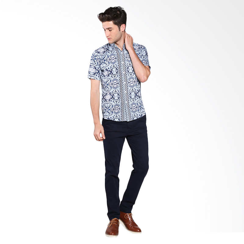 VM B-121 Kemeja Batik Pendek Casual Slimfit - Biru
