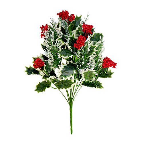 Christmas Holly Bush with Berries 16 Inch Set of 6