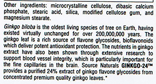 Studio : Source Naturals Publisher : Source Naturals Binding : Health and Beauty Product Description Supports mental acuity;Ginkgo-24 is a standardized concentration of prime quality Ginkgo biloba leaves;Supports blood vessel integrity, which is important for the fine capillaries in the brain;Vegetarian friendly 0