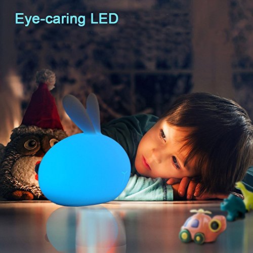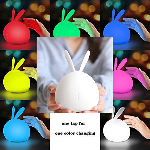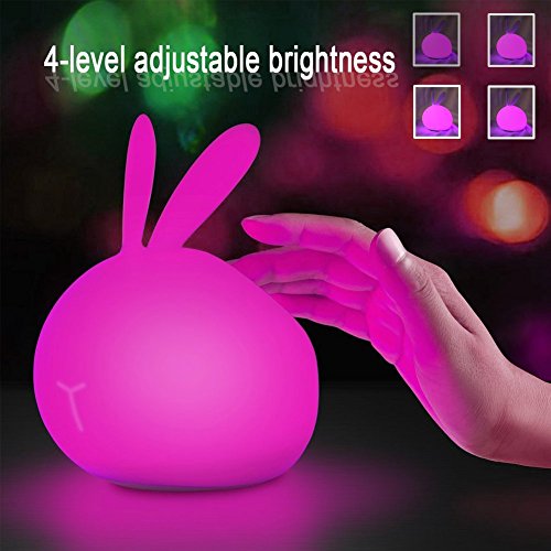 Touch Bunny Baby Nightlights, YHZO Kids Silicone LED Night Lights, USB Rechargeable 7 Color 4 Brightness Change , Interesting Soft Bedside Lamp,...