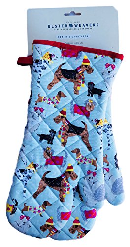 Cute Dogs Wearing Winter Attire Set of Two Holiday Oven Mitt Gauntlet Set
