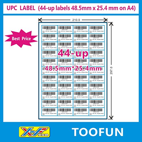 Amazon FBA Label (100 Sheets, 4400 Labels) 44-up labels 48.5*25.4mm on A4 White Self Adhesive Shipping Mailing stickers for Laser/InkJet Printer, Meets Amazons FBA requirements- TOOFUN