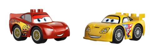 -. Feature : Features flag, tools and a selection of decorated and basic bricks / Race the characters. / Familiar Disney/Pixar Cars theme provides instant role-play appeal / Lightning McQueen measures over 3" (10cm) long, 2" (6cm) wide and 1" (4cm) tall / Gorvette measures over 3" (10cm) long, 2" (6cm) wide and 1" (4cm) tall