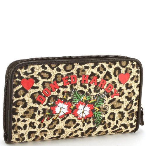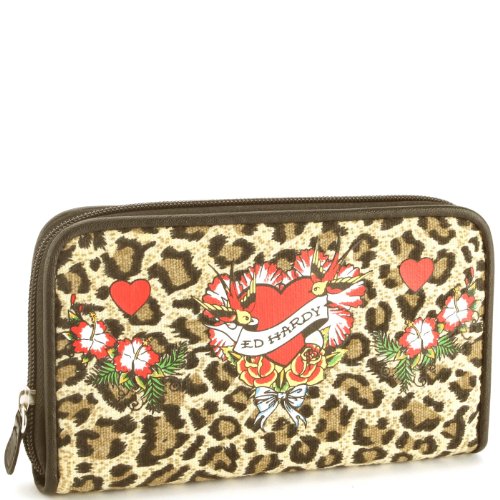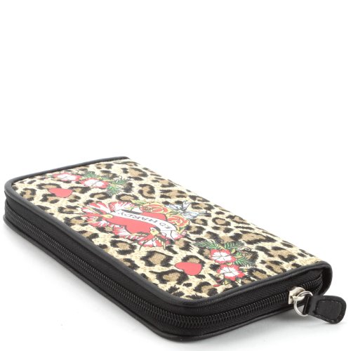 Ed Hardy Kim Flower Girl Zip Around Wallet - Leopard