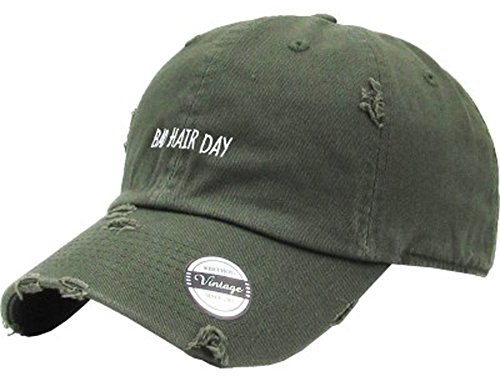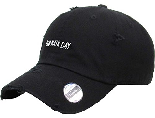 Binding : Apparel Product Description Ladies will love this ball cap- perfect to wear when there is no time to fix your hair! Hat is vintage style and distressed. It is cotton and has a back strap with an adjustable buckle closure. "BAD HAIR DAY" is embroidered on the front. 0