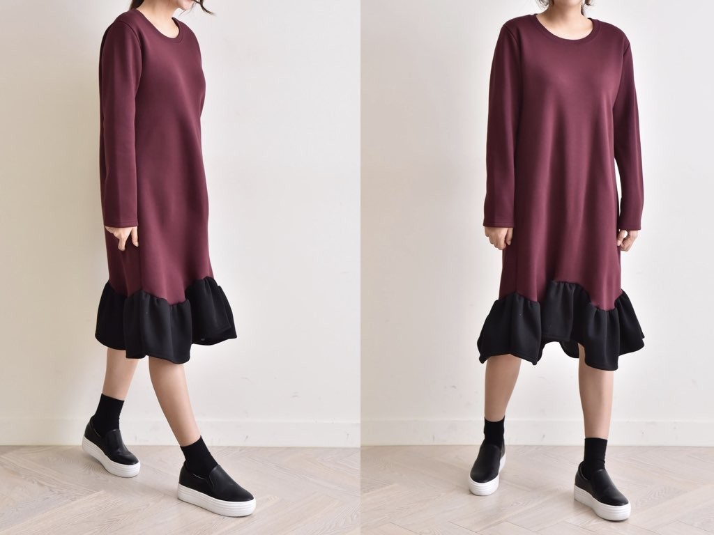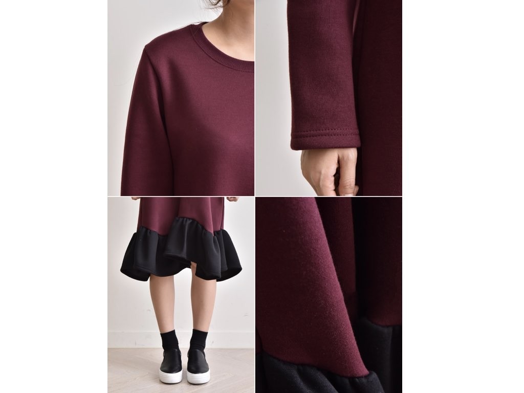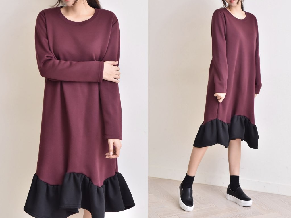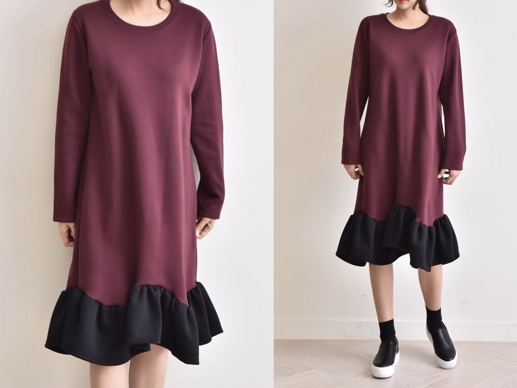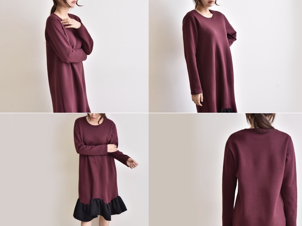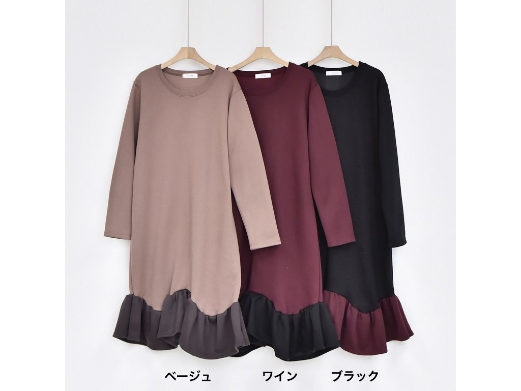 フリルのついた「ふわっふわ」としたワンピースです。とても丁寧なつくりとなっており、ゆったりと着ることができます。1.基本情報色:3色展開(ブラック/ベージュ/ワイン)サイズ:Free素材:綿60%ポリエステル40%製造国:Korea2.サイズ情報肩幅:41cm 身幅(胸断面):52cm 腕の長さ:58cm 着丈:107cm (サイズは計る方法に応じて±2〜3cmの誤差があります。ご了承お願い致します)モデル着用サイズ:F※着用モデル(163cm、体重47kg、足のサイズ245mm)3.その他の情報厚み:中間透け感:なし伸縮性:中間裏地:有り(起毛)洗濯方法:洗濯お取り寄せ商品は、納品まで約10日前後いただきます。ご了承お願い致します。