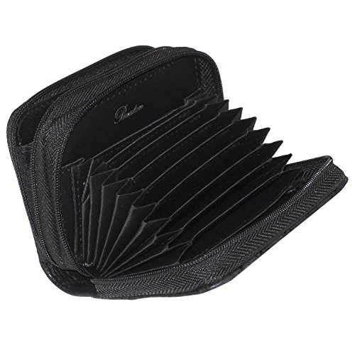Features 2 zippered compartments, ID window, and 9 accordion folds.