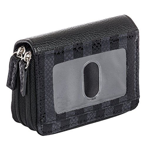 This Wallet by Buxton is a stylish and trendy way to stay organized on-the-go. Crafted of animal friendly faux leather, this wallet features two zip-around compartments for extra secure storage. Adorable and compact, The first compartment includes 3 pockets and the additional gusseted compartment includes 12 accordion style card slots to help keep your belongings organized. The exterior of the wallet features a clear finger glide ID window and logo embossing. Measures 4" x 3" x 1.5"