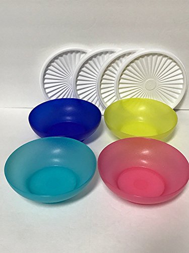 Tupperware Servalier Salad Bowls 16oz Set of 4 Blue, Aqua, Margarita, Pink With White Seals