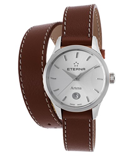 Studio : Eterna Publisher : Eterna Binding : Watch Product Description The Artena collection carries with it the quality and style that Eterna's known for while creatively moving forward in assembling the perfect look. Its delightful design complements the striking silver-tone sunray dial comfortable chic brown genuine leather strap with contrast stitching and magnificent color scheme. Yet another must-have timepiece from Eterna to complete your collection. 0