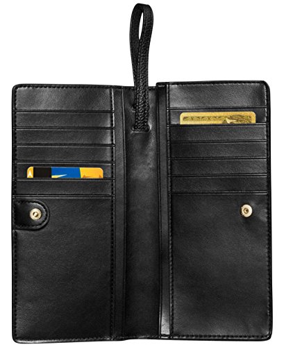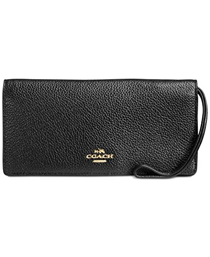 Product DescriptionPolished pebble leather. Credit card pockets. Bill compartment. Snap closure, fabric lining. Outside pocket. Wrist strap attached. Imported.0