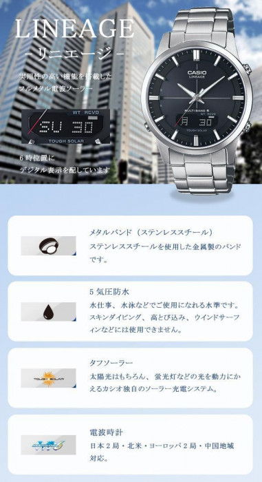 | フルメタルケースのソーラー電波時計「LINEAGE(リニエージ)」。 |