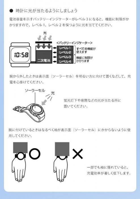 | 仕様 | 男性/紳士用腕時計 適応サイズ(腕まわり):15.0~20.5cm 使用電池:ソーラー充電電池(内蔵) 充電二次電池寿命:約7~10年 |