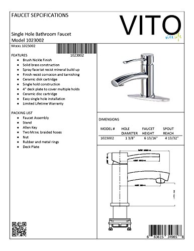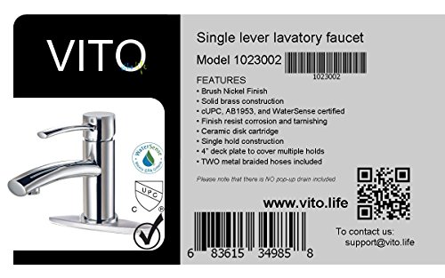 VITO 3s single lever lavatory faucet with 4" deck plate brushed nickel finish