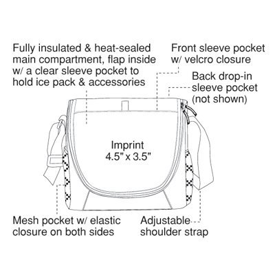 - Fully insulated & heat-sealed main compartment, flap inside w/ a clear sleeve pocket to hold ice pack & accessories