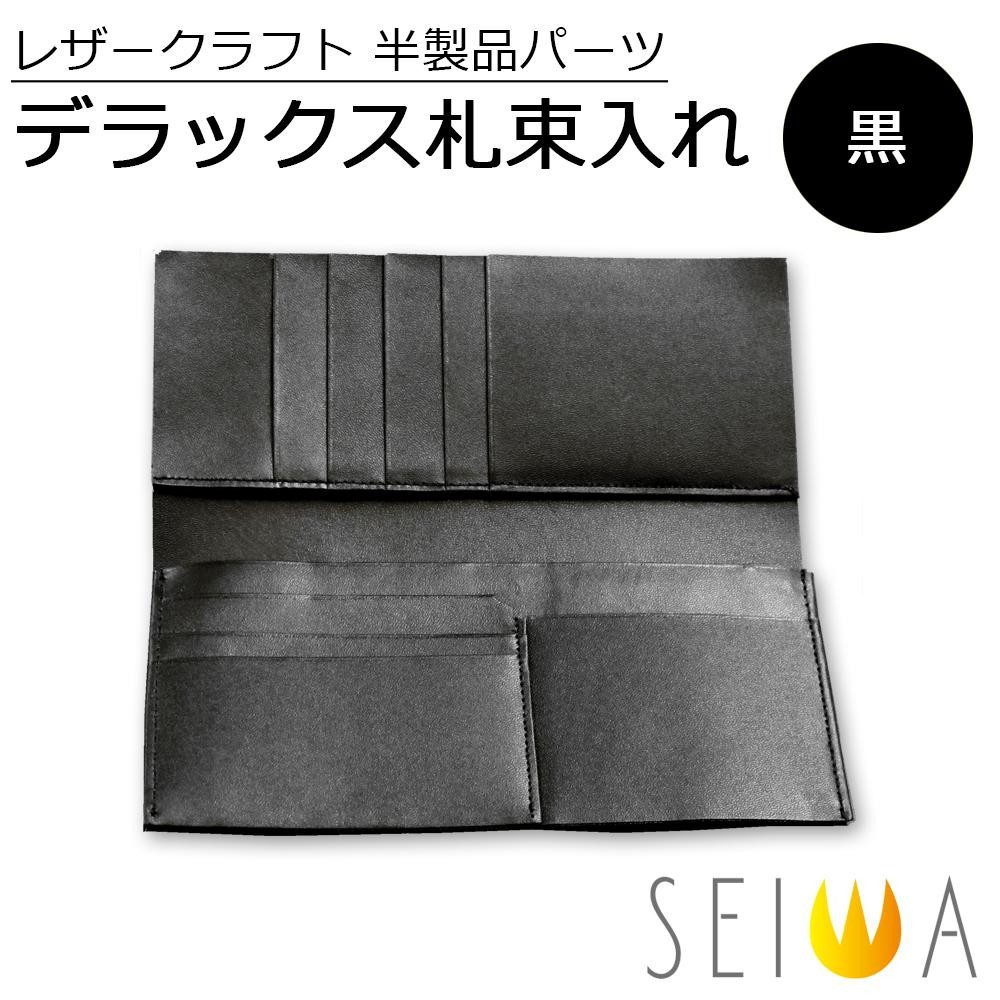 ファスナーポケットが1つあります。カードが7枚入ります。半製品パーツは、バッグや財布などのベースとなる部分が完成されているものです。見える部分に仕上げた革を貼る・かがるだけで作品ができあがります。 |