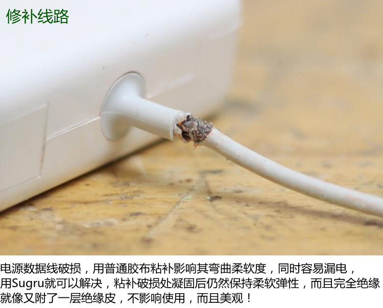 In 2010, one of the world's 50 best inventions named the "Times", any material can be bonded! Super powerful universal shaping viscous silicone! Sugru universal clay is by Irish designer Jane ní Dhulchaointigh invention. Sugru universal is capable of hardened clay, when within half an hour after opening you can freely shaping it, use it to modify the items you want to fix arbitrarily, then it will become extremely hard, but stretchable firmly bonded to the surface of items repaired, feel will make you feel more comfortable, fully capable of anything sticky patch. Sugru universal heat-resistant clay can be cold, it can also be water (including sea water) , can work in -60 degrees to 180 degrees C temperature range, with the ambient temperature changes in the surface temperature change, but it will not be hard degree influences.Sugru a variety of colors (black, white, red, yellow, blue) can be used with use, and can be mixed in varying proportions to create new magic , both beautiful and durable.